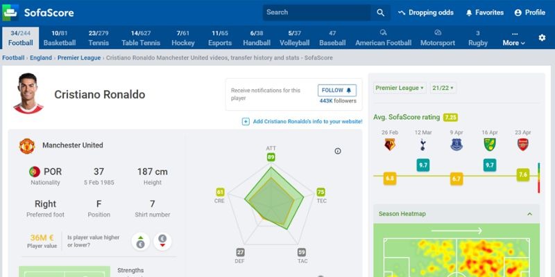 Website Sofascore là cái tên quen thuộc trong cộng đồng yêu bóng đá số nhờ giao diện hiện đại và khả năng hiển thị dữ liệu theo thời gian thực. Từ những biểu đồ xG đến đánh giá phong độ cầu thủ, trang này mang đến cái nhìn tổng thể về trận đấu cho mọi đối tượng.