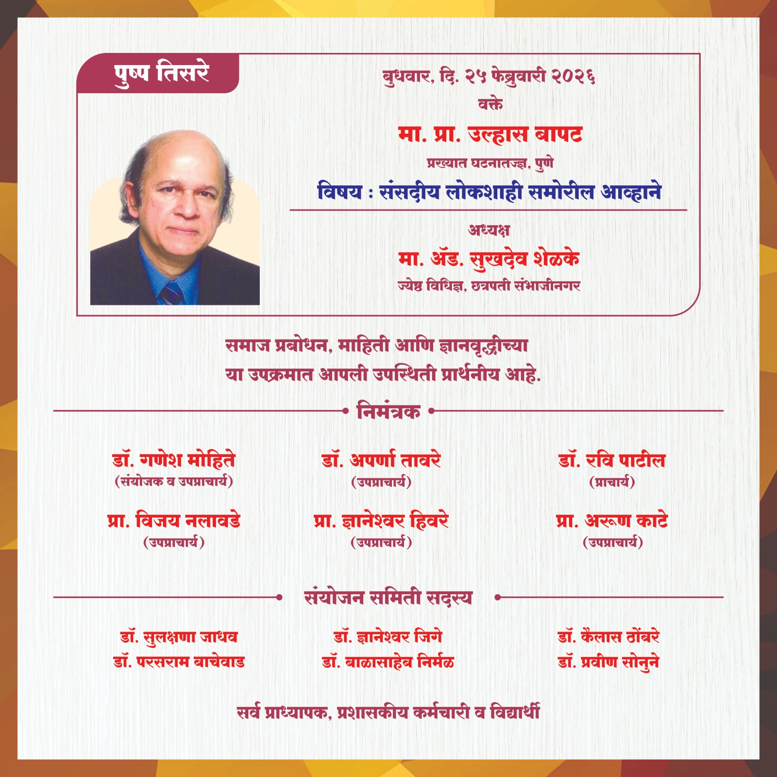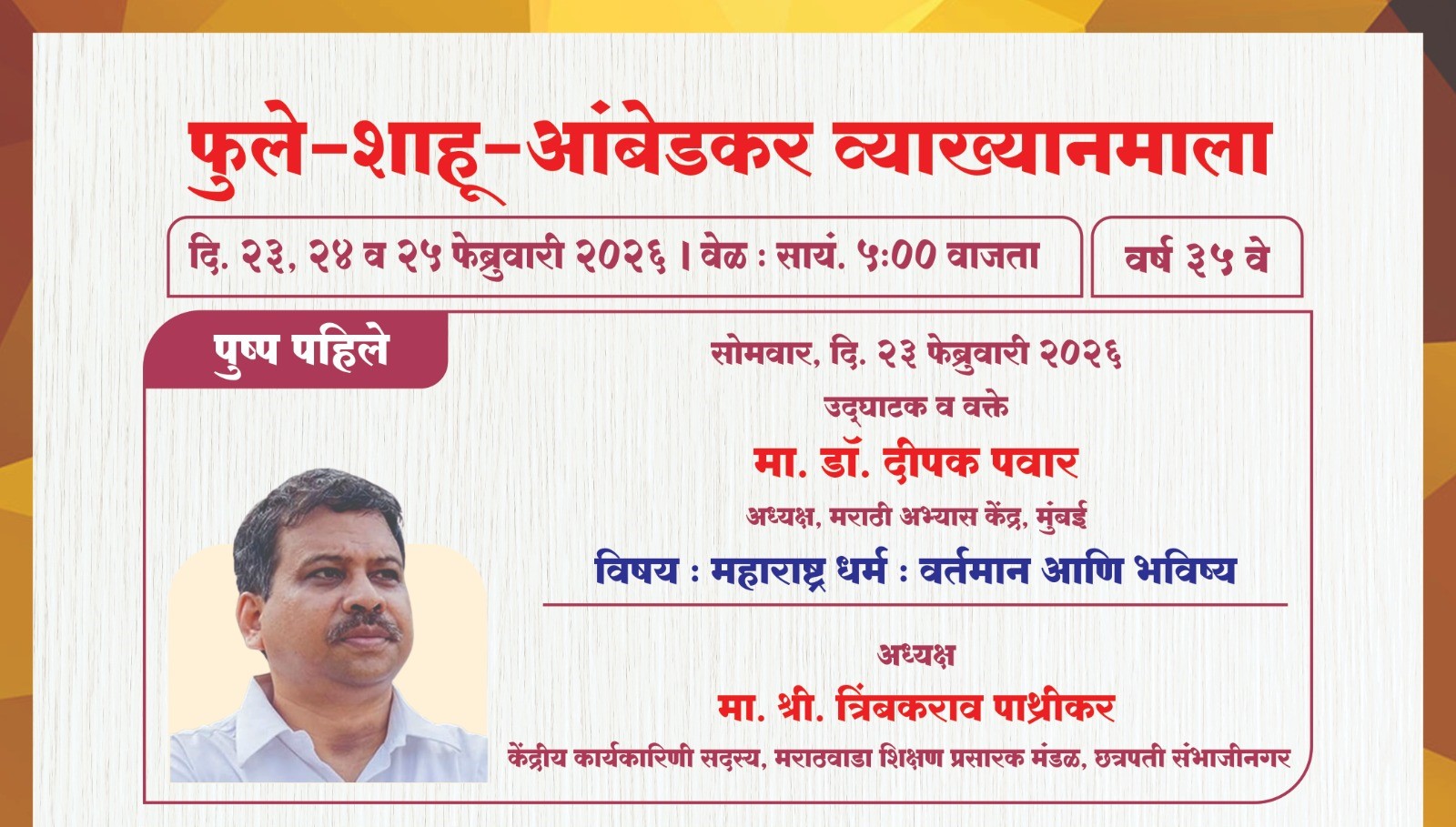 फुले शाहू आंबेडकर व्याख्यानमाला २३, २४ व २५ फेब्रुवारी २०२६ संपूर्ण कार्यक्रम पत्रिका